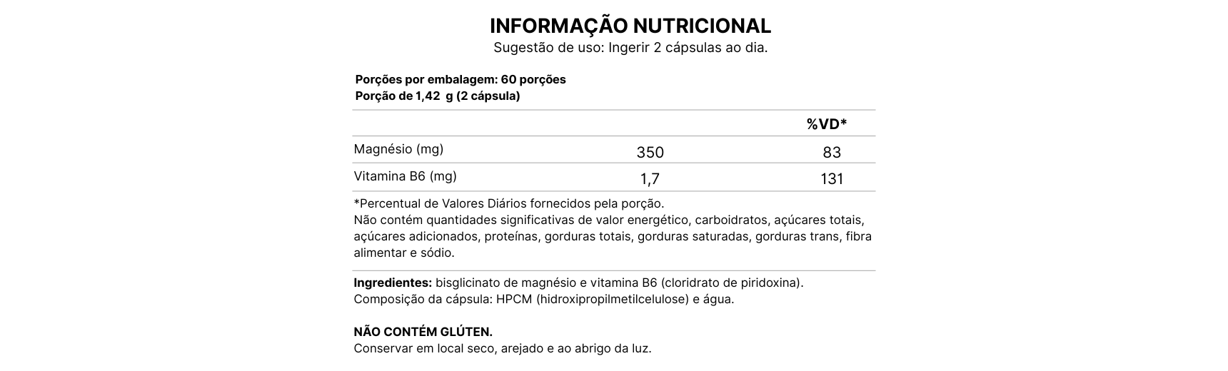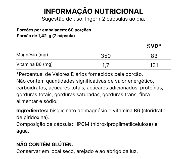 Suplemento alimentar de magnésio e vitamina B6 em cápsulas de 710 mg.