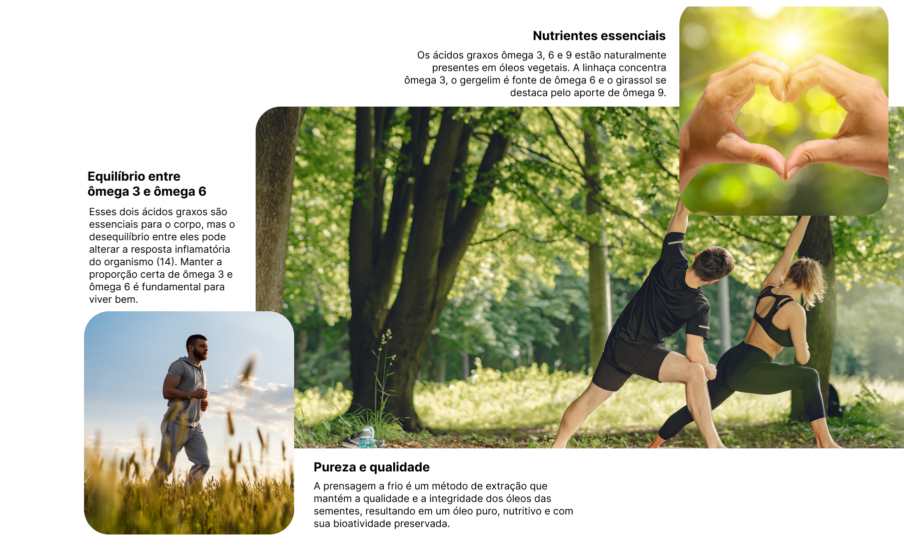 Imagine um blend perfeito de óleos de girassol, linhaça e gergelim, todos prensados a frio para garantir máxima qualidade.